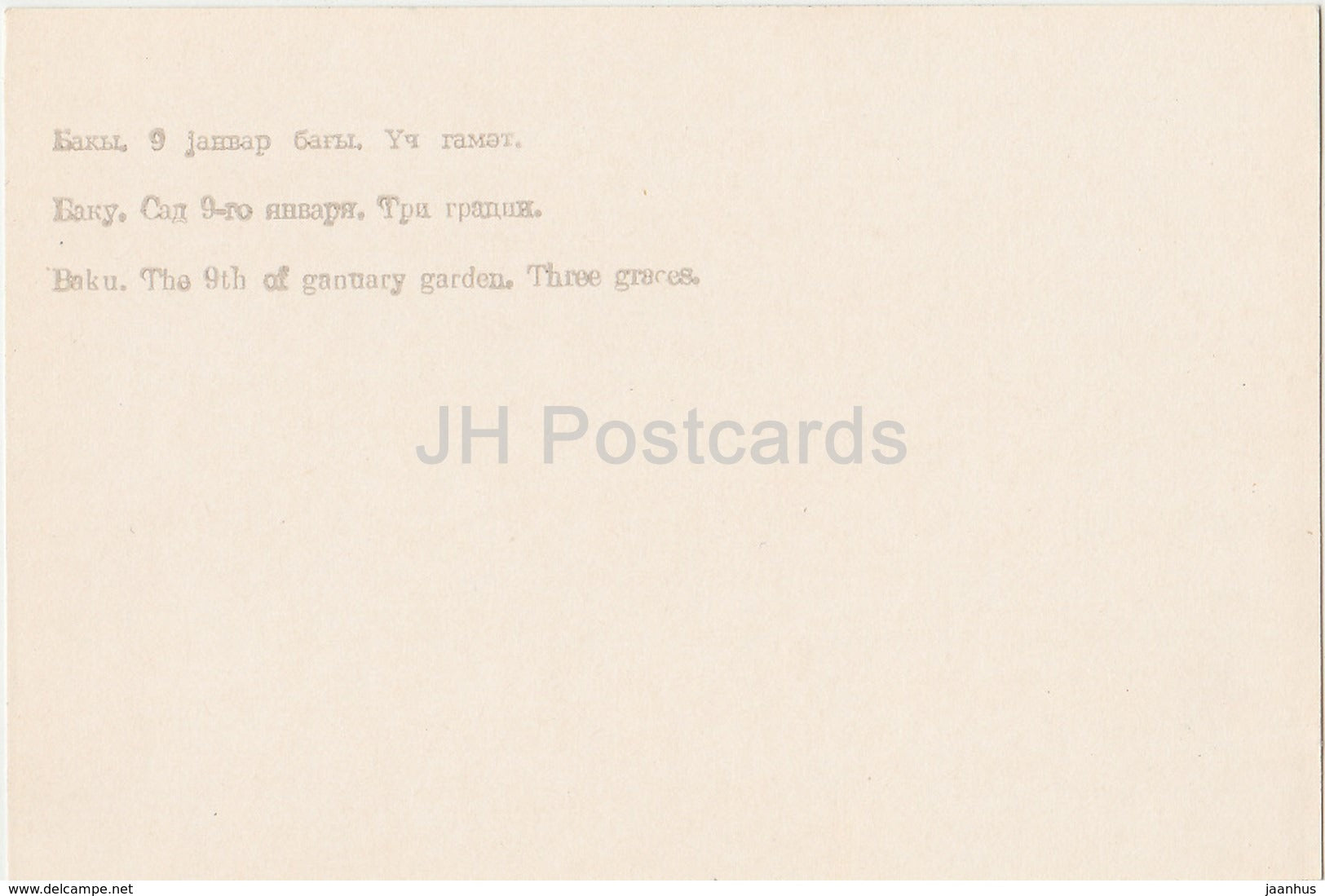 Baku - The 9th of January Garden - Three Graces sculpture - fountain - 1972 - Azerbaijan USSR - unused