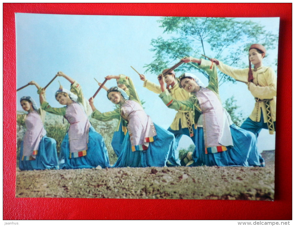 Bamboo-Flute Dance - Vietnamese Folk Dance - folk costumes - old postcard - Vietnam - unused