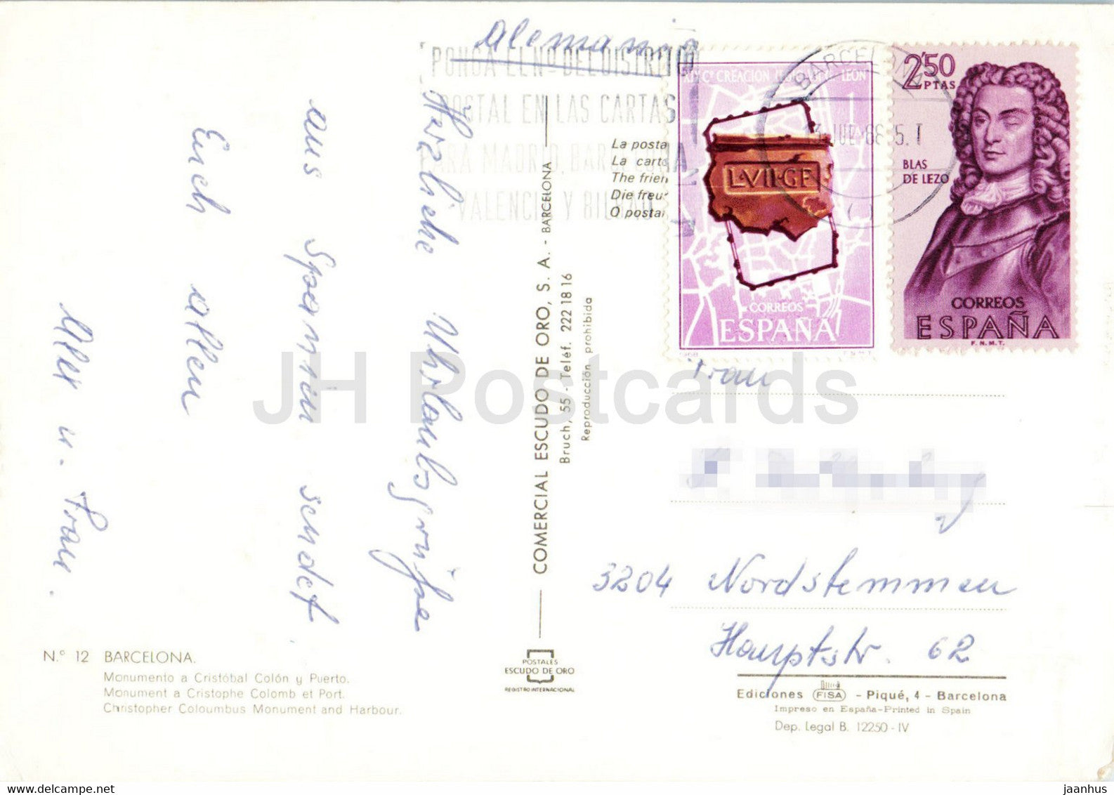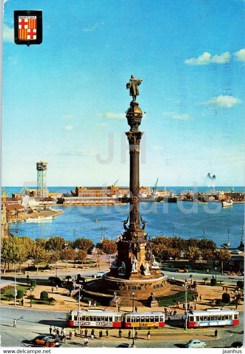 Barcelona - Monumento a Cristobal Colon y Puerto - monument - port - tram - 12 - 1968 - Spain - used