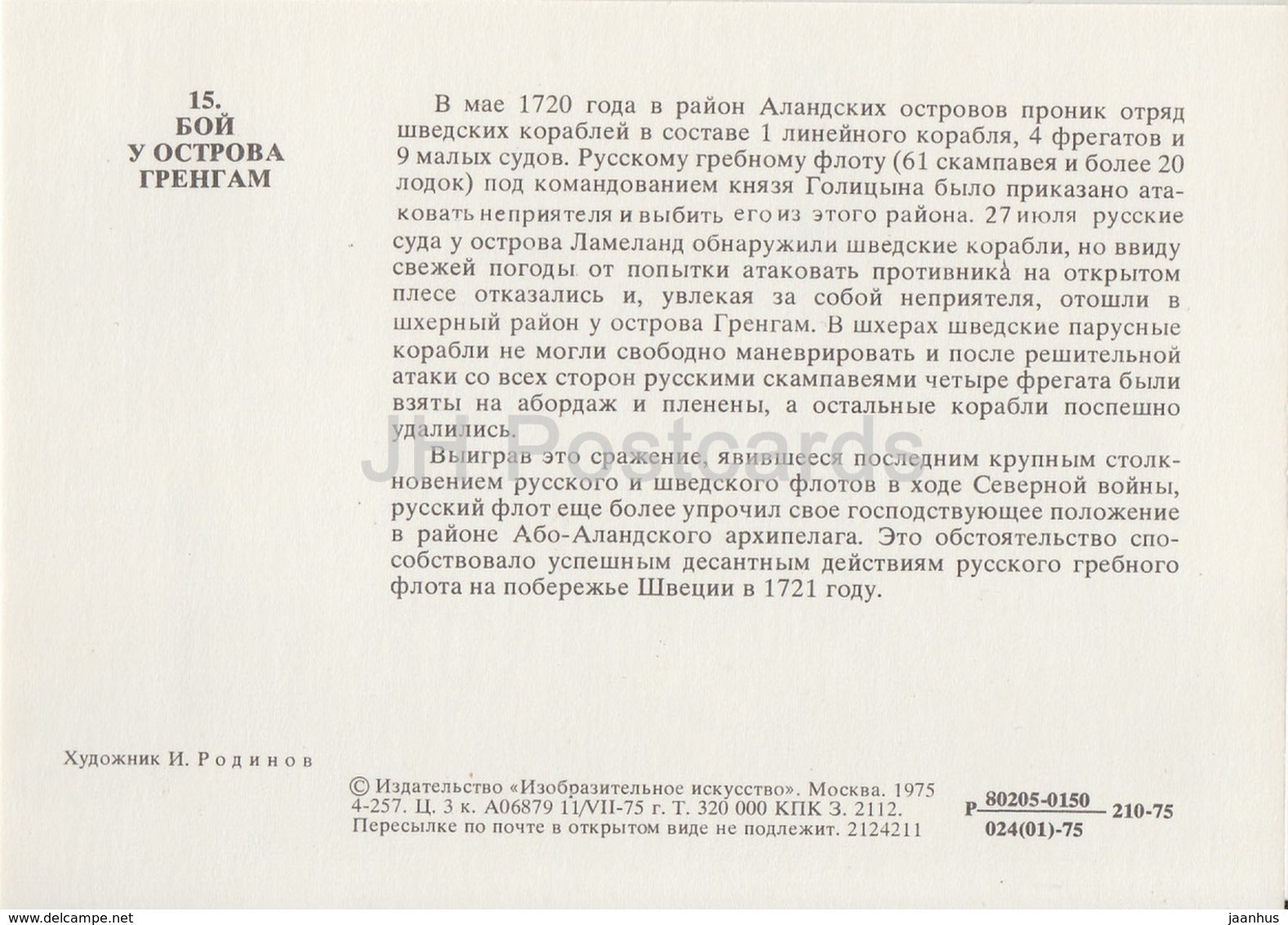 Battle near Grengam , 1720 - warship - sailing ship - History of Russian Navy - 1975 - Russia USSR - unused