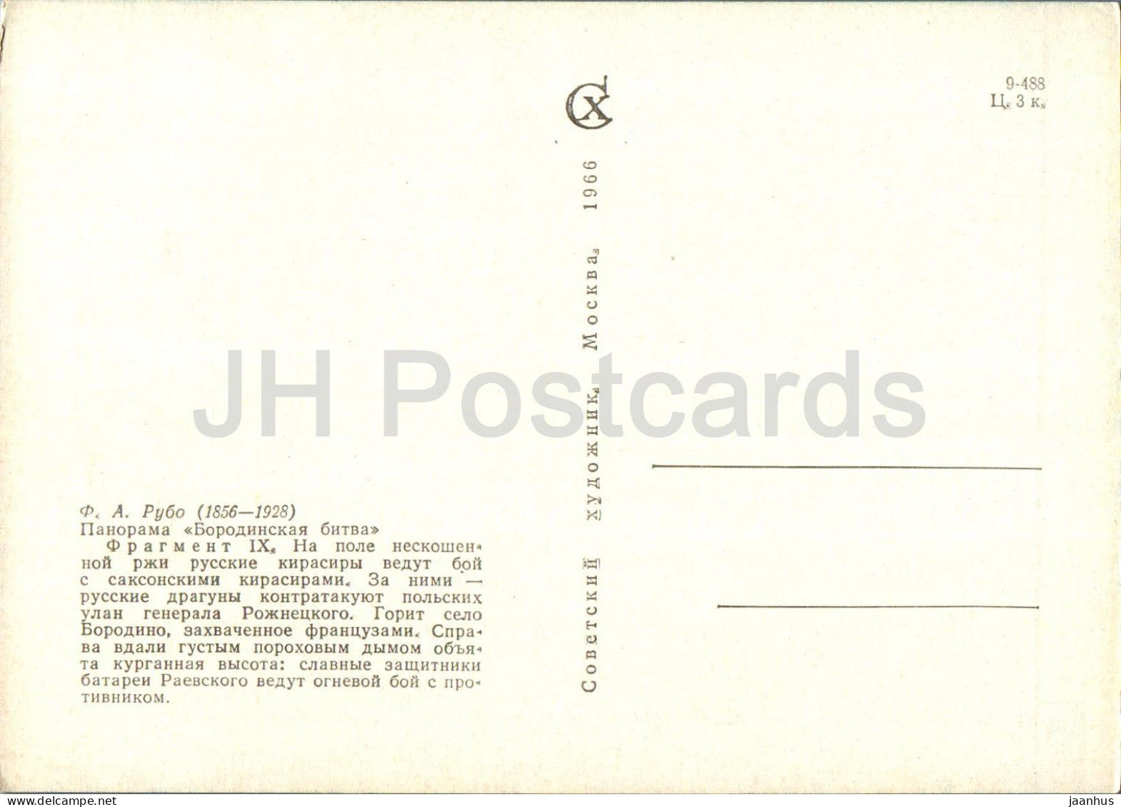Battle of Borodino - battle - panorama - painting by F. Rubo - 1966 - Russia USSR - unused