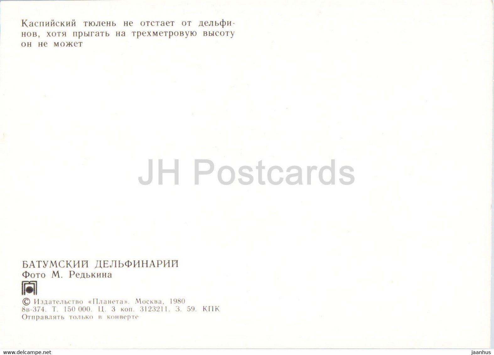 Batumi Dolphinarium - Caspian seal - 1980 - Georgia USSR - unused