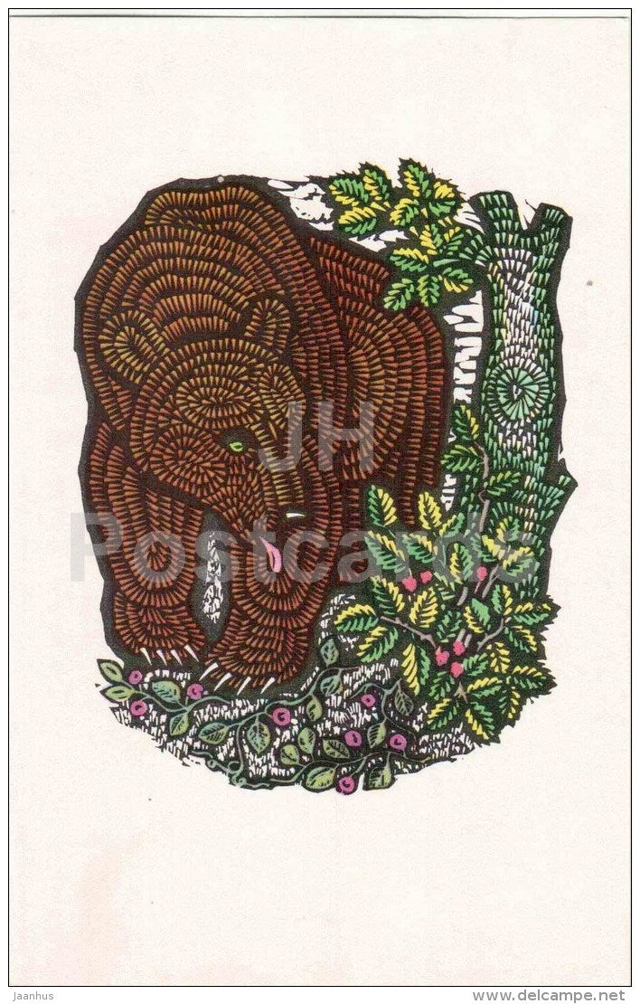 Bear - illustration by V. Penzin - Decorative Birds and Animals - 1972 - Russia USSR - unused