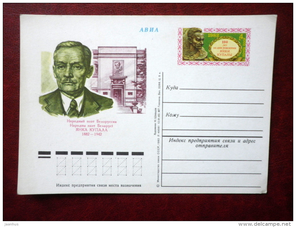 Belarusian poet and writer Yanka Kupala - stationery card - 1982 - Russia USSR - unused