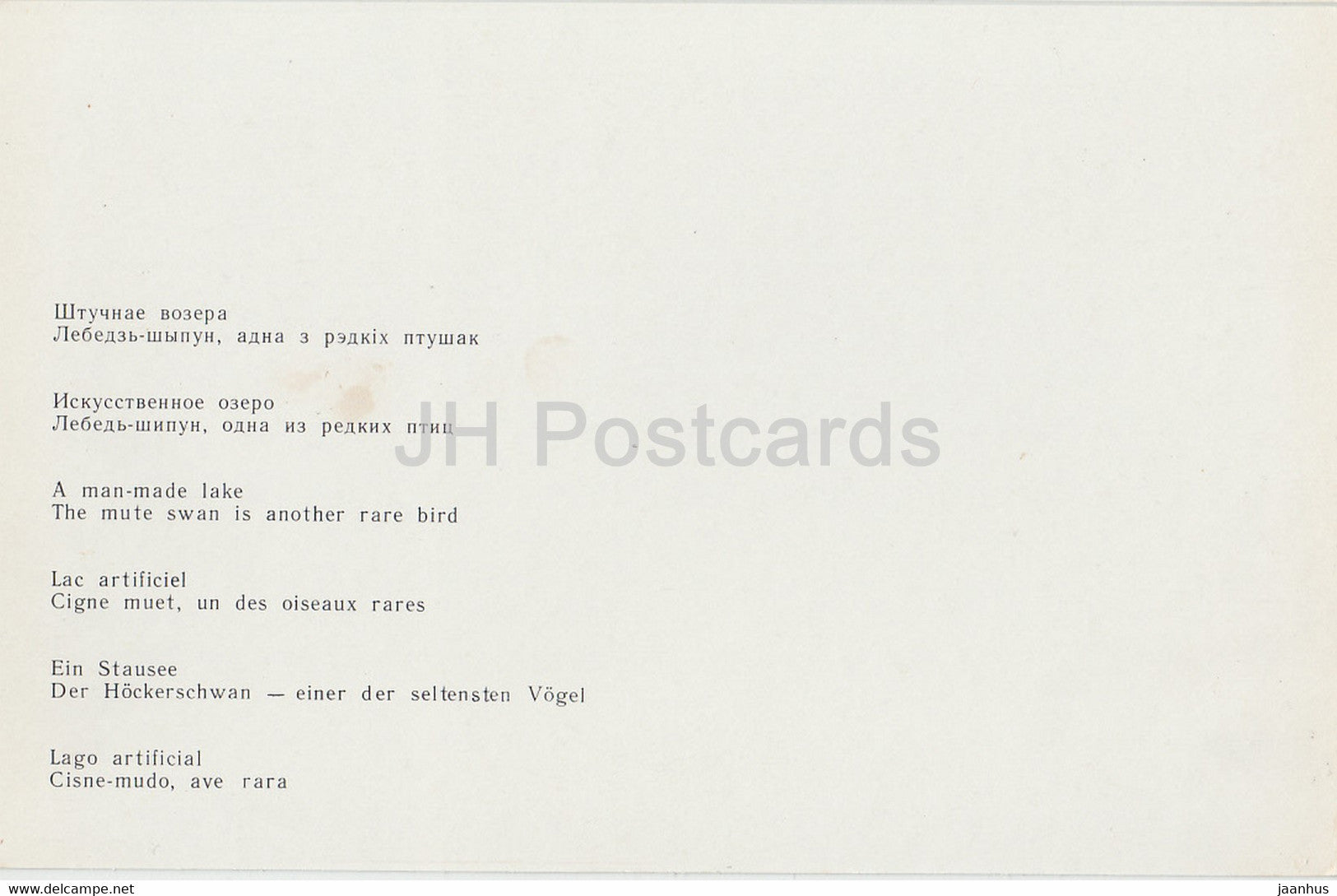 Belovezhskaya Pushcha National Park - A Man Made Lake - The Mute Swan - birds - 1981 - Berarus USSR - unused