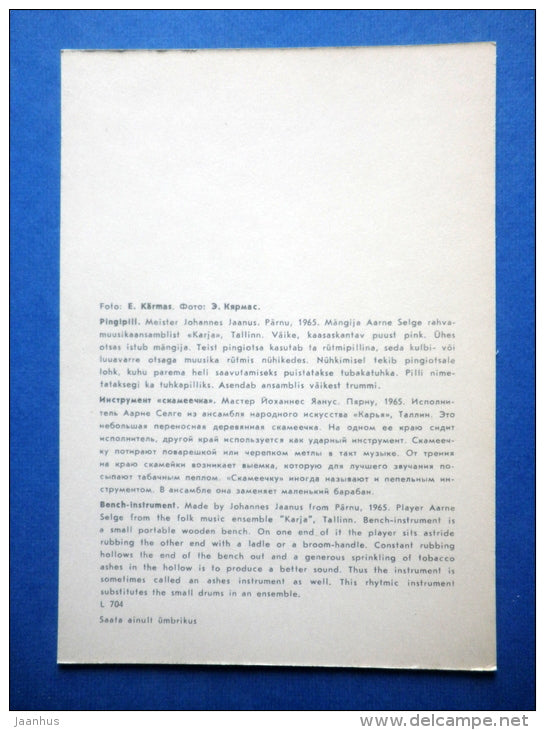 Bench Instrument - Estonian folk instruments - folk costume - 1979 - Estonia USSR - unused