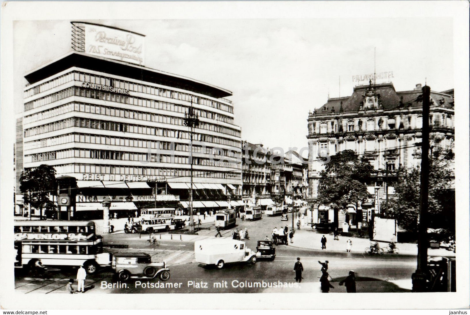 Berlin - Potsdamer Platz mit Columbushaus - car - bus - old postcard - 1936 - Germany - used