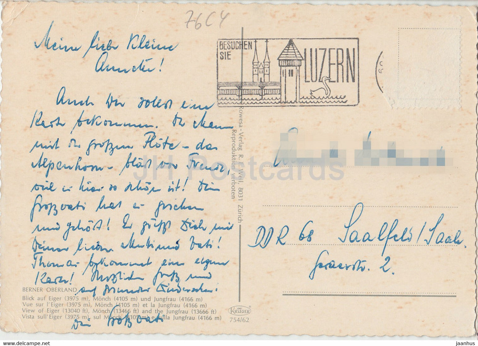 Berner Oberland - Blick auf Eiger Monch und Jungfrau - Alphorn - Swiss folk costumes - Switzerland - used
