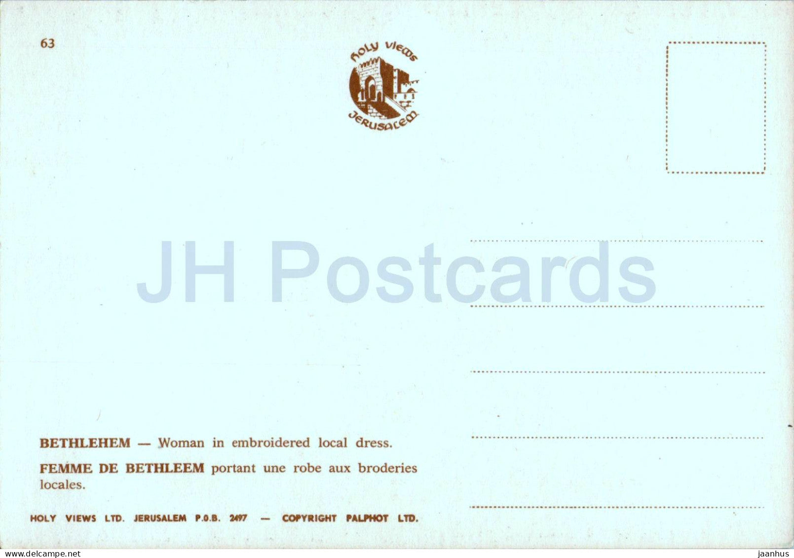 Bethlehem - Woman in embroidered local dress - folk costumes - 63 - Israel - unused