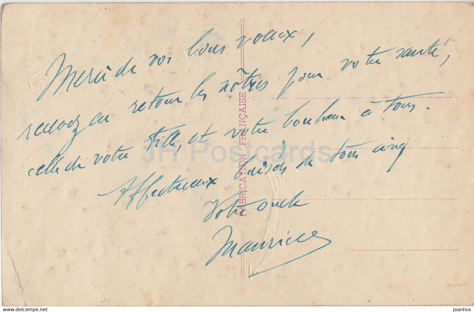 Birthday Greeting Card - Bonne Annee - flowers - purple tulips - illustration - old postcard - France - used