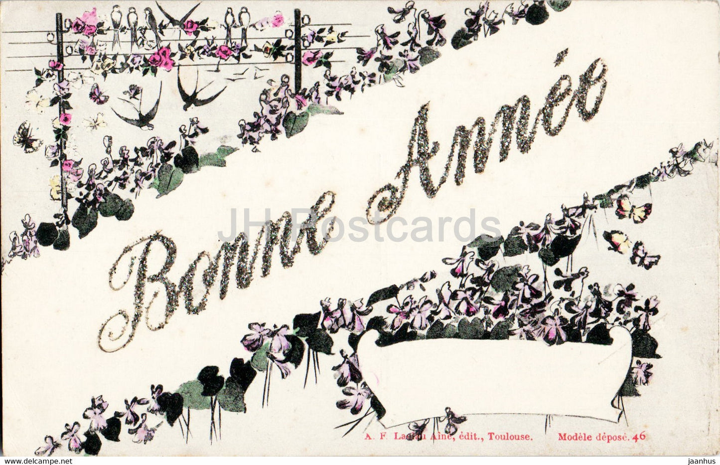 Birthday Greeting Card - Bonne Annee - illustration - 46 - old postcard - France - used