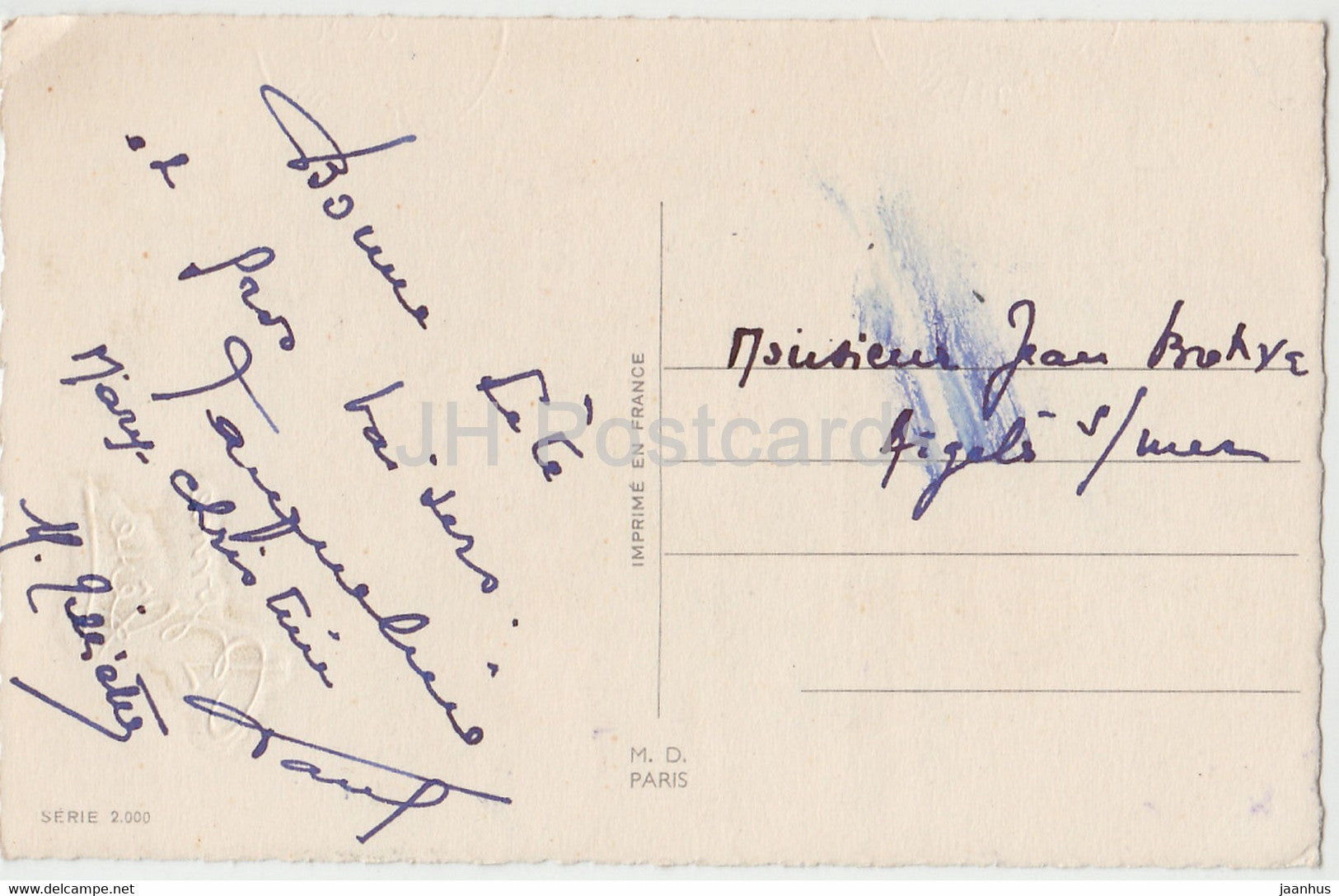 Birthday Greeting Card - Bonne Fete - flowers - flowers in a basket - illustration - old postcard - France - used