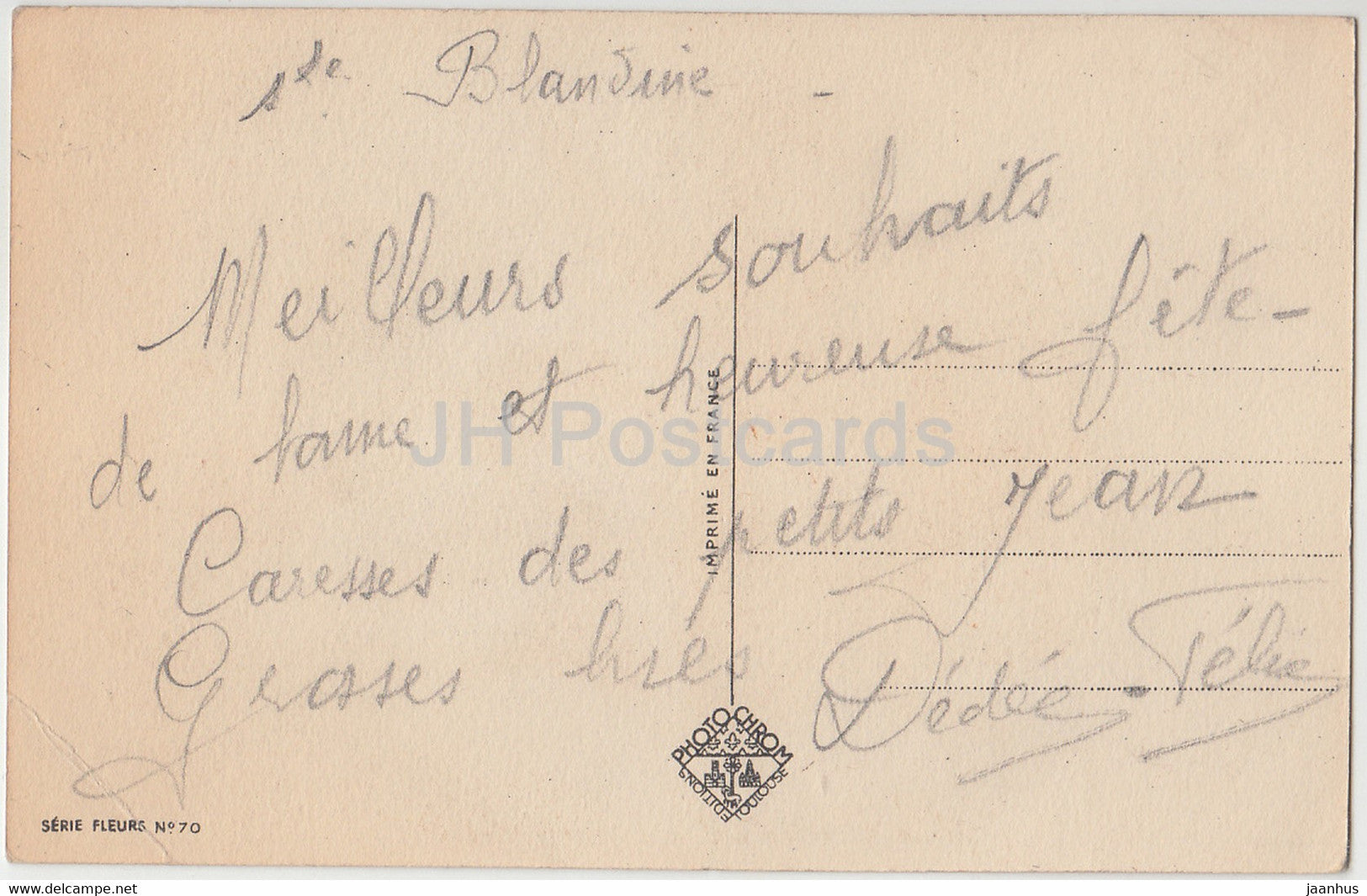 Birthday Greeting Card - Bonne Fete - flowers - tulips - Serie Fleurs - 70 - illustration - old postcard - France - used