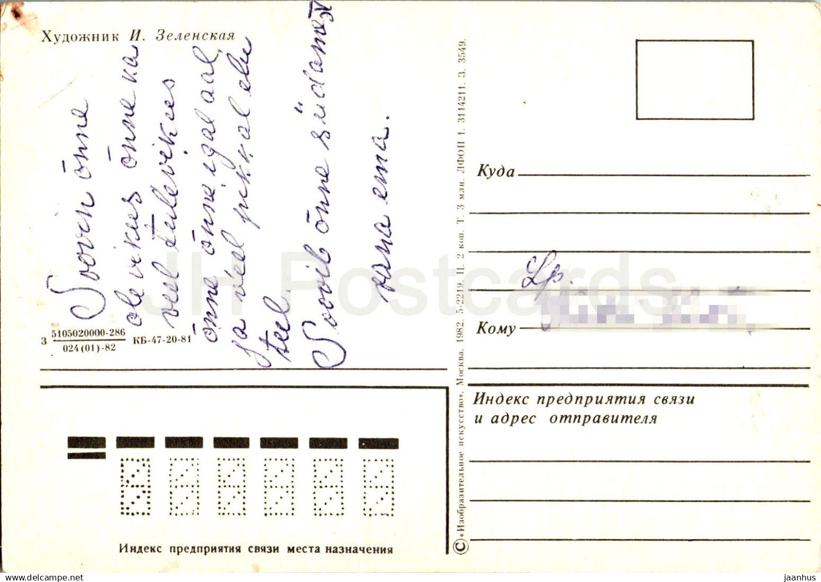 Birthday Greeting Card by I. Zelenskaya - Blue Flowers in a Basket - illustration - 1982 - Russia USSR - used