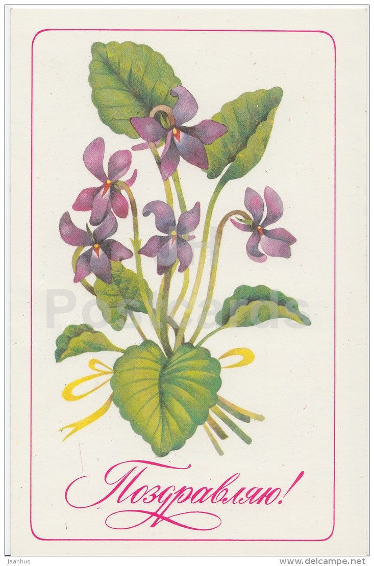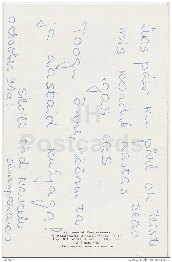 Birthday Greeting Card by M. Konstantinova - flowers - 1984 - Russia USSR - used
