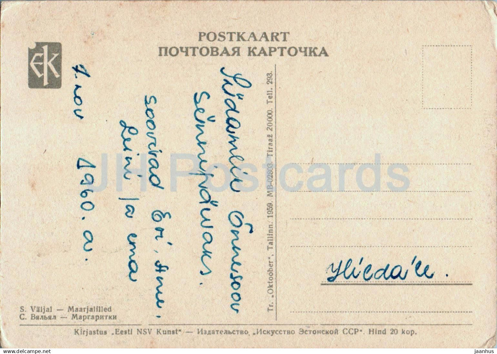 Birthday Greeting Card by S. Valjal - Common Daisy - flowers - illustration - 1959 - Estonia USSR - used