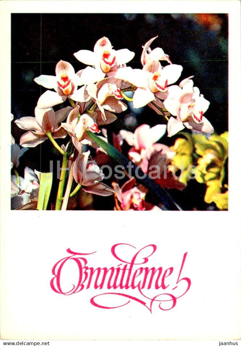 Birthday Greeting Card - orchid - flowers - 1982 - Estonia USSR - used