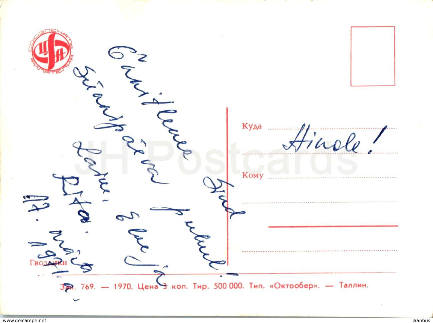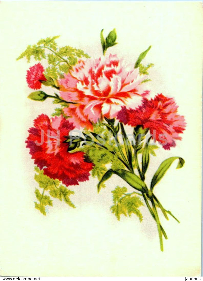 Birthday Greeting Card - Red and Pink Carnations - flowers - illustration - 1970 - Estonia USSR - used
