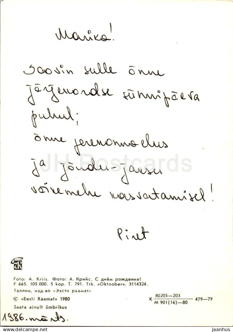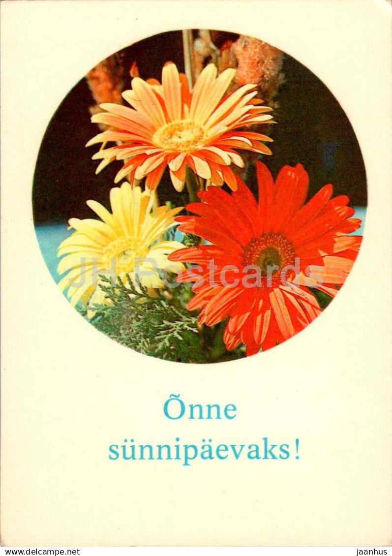 Birthday Greeting Card - Yellow - Orange Gerbera - flowers - 1980 - Estonia USSR - used
