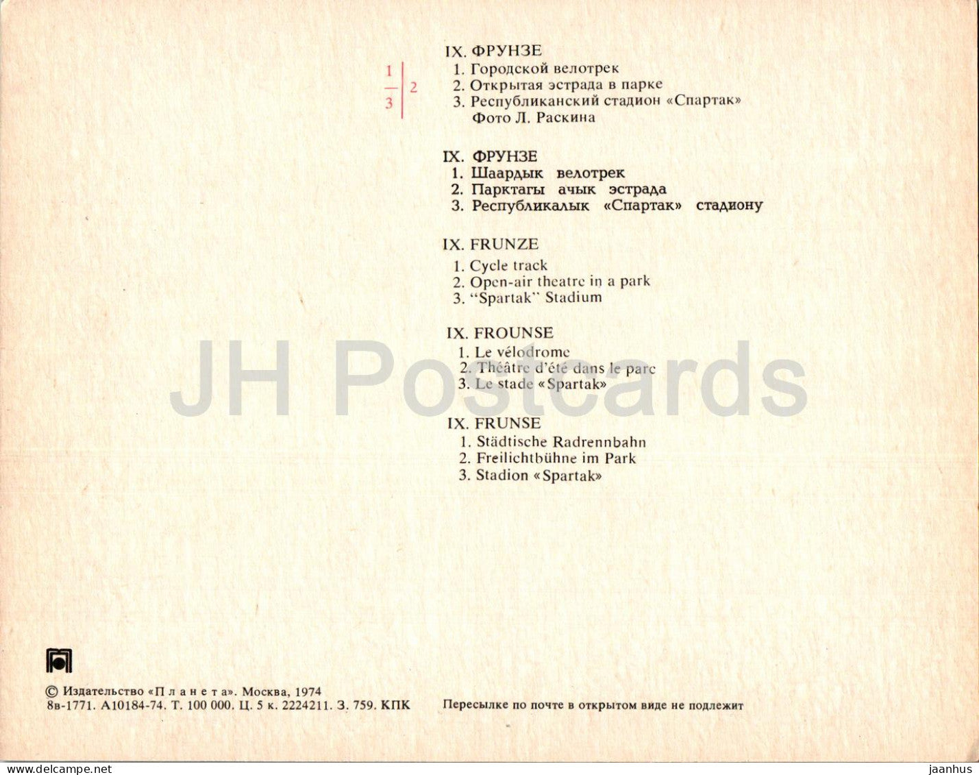 Bishkek - Frunze - Cycle Track - open air theatre park - Spartak stadium - 1974 - Kyrgyzstan USSR - unused