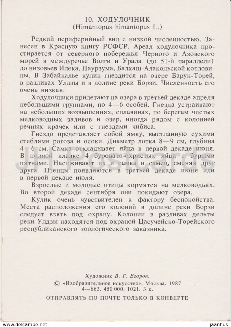 Black-winged stilt - Himantopus himantopus - birds - 1987 - Russia USSR - unused