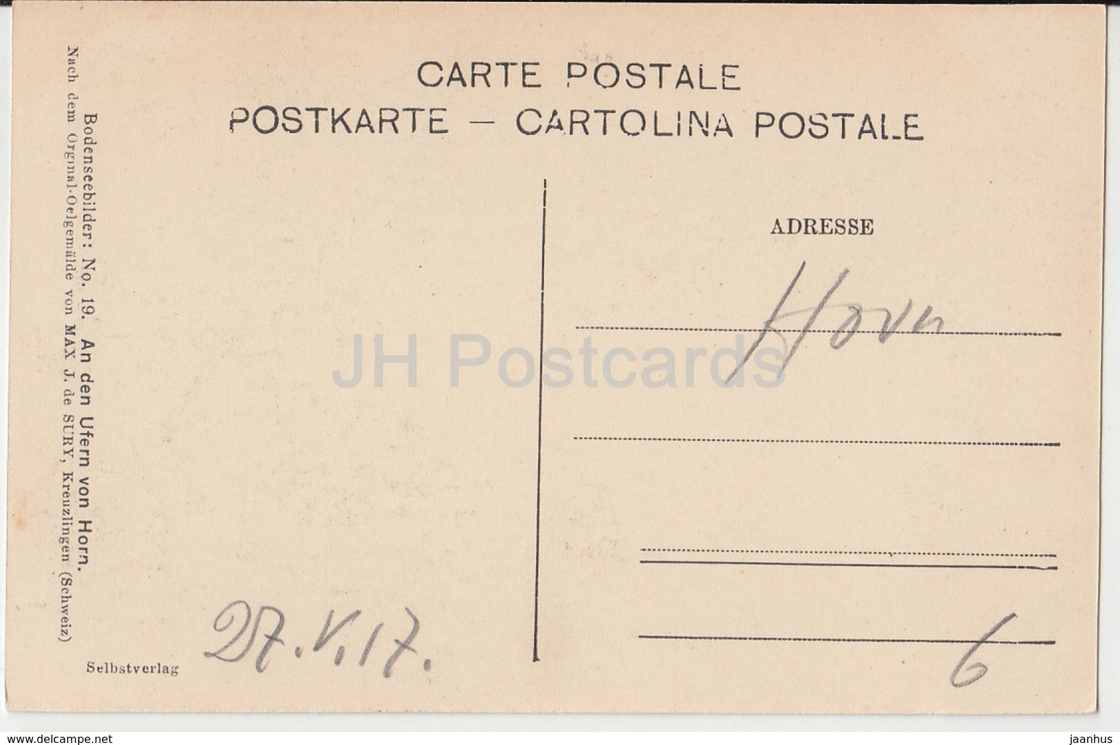 Bodenseebilder - An den Ufern von Horn - Max J. de Sury - 19 - Switzerland - 1917 - used