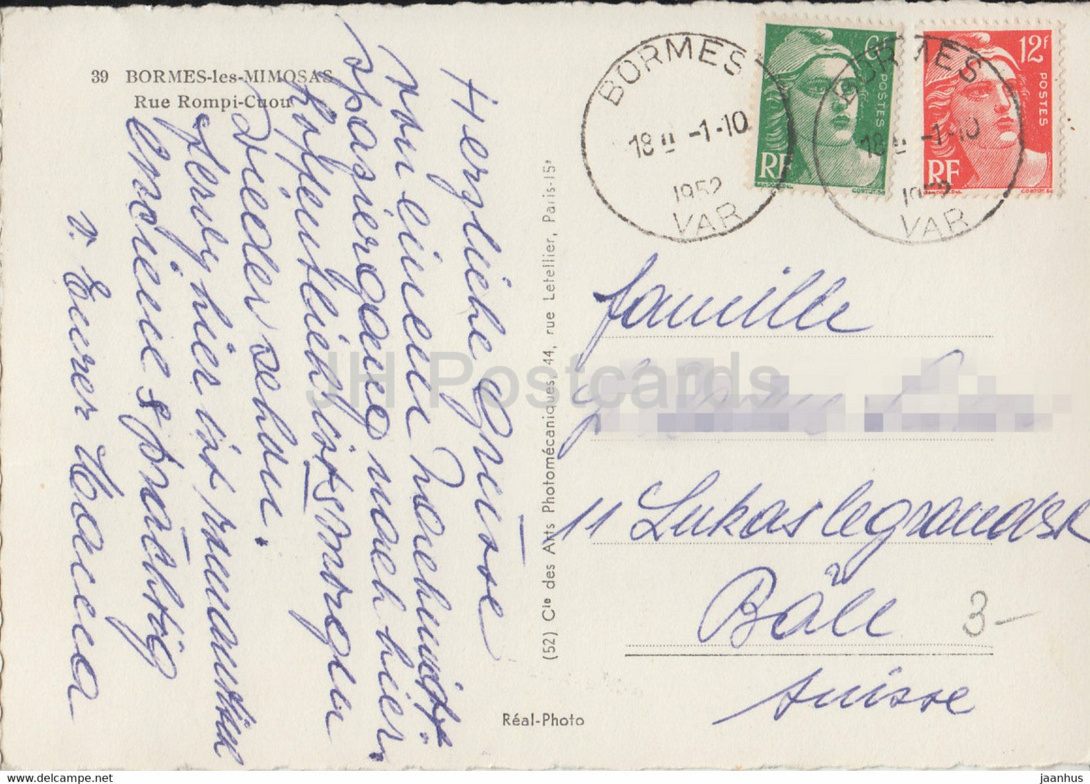 Bormes les Mimosas - Rue Rompi Cuou - old postcard - 1952 - France - used