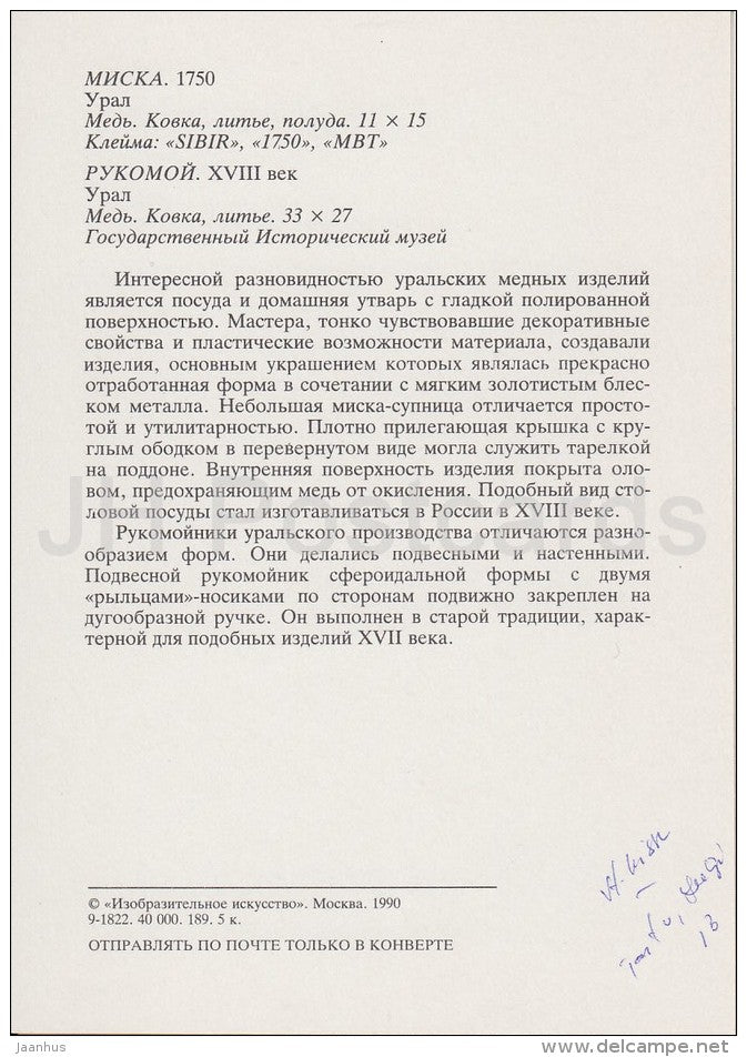 Bowl , Handwashing Pot - Copper Art in Russia - 1990 - Russia USSR - unused