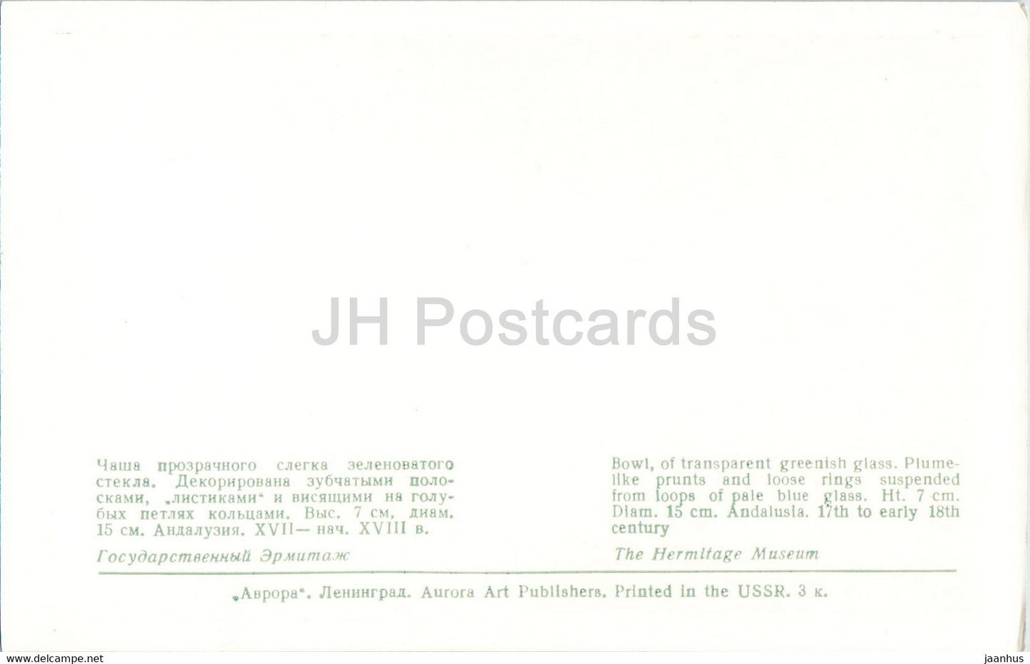 Bowl of transparent greenish glass - Spanish Glass in Hermitage - Spanish art - 1970 - Russia USSR - unused