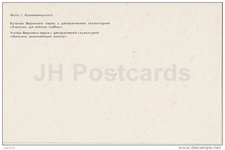 Boy pulling out a splinter sculpture in Upper Park - Nikitsky Botanical Garden - Crimea - 1989 - Ukraine USSR - unused