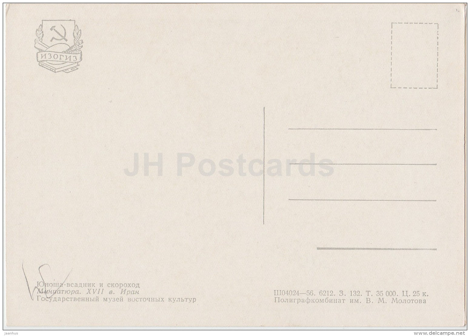 Boy rider and runner - horse - Iranian art - 1956 - Russia USSR - unused
