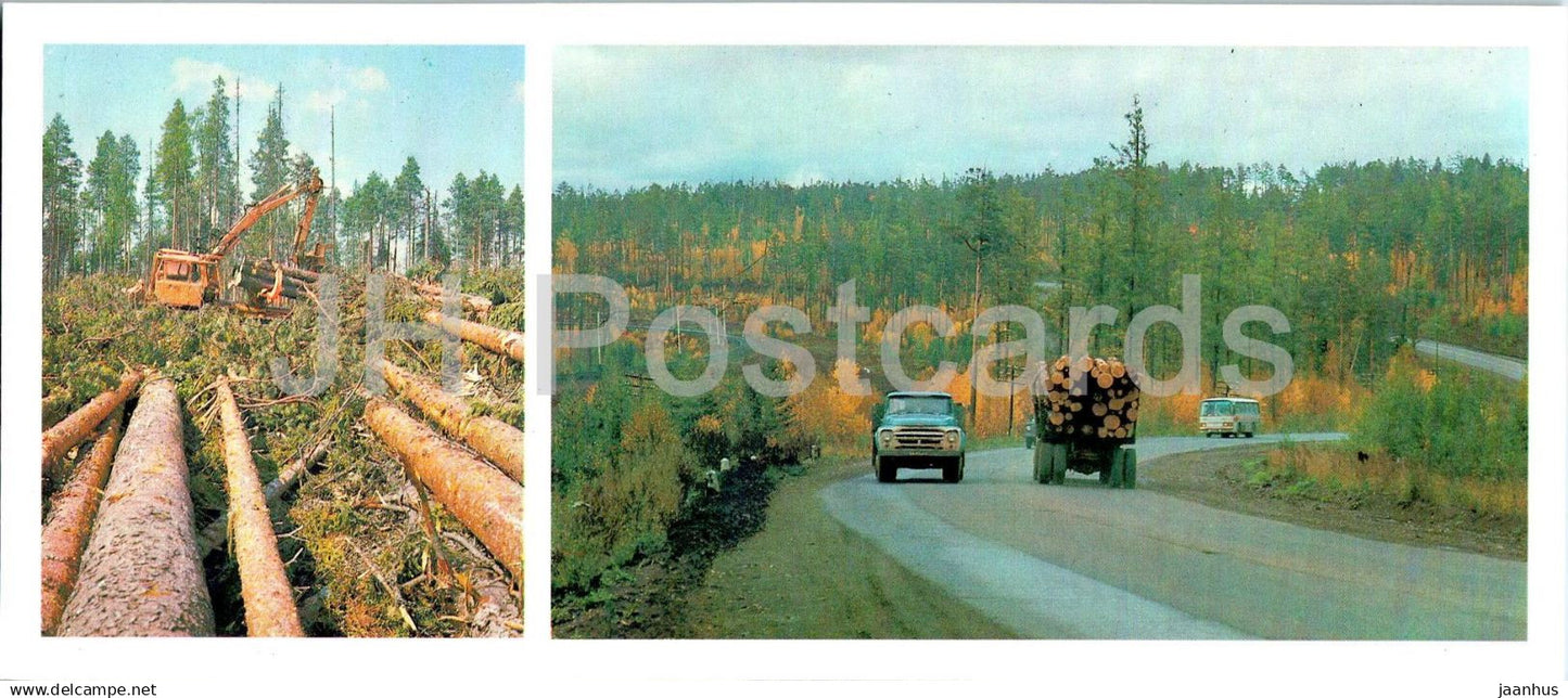 Bratsk reservoir - timber near Angara river - truck ZIL - car - 1 - 1981 - Russia USSR - unused