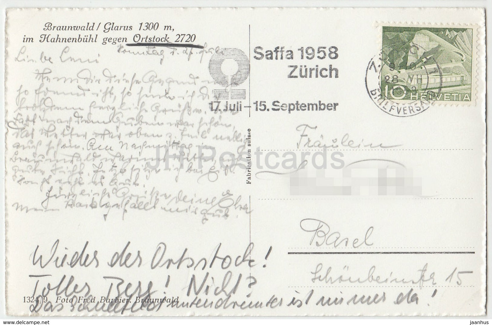 Braunwald - Glarus 1300 m im Hahnenbuhl gegen Ortstock 2720 - Switzerland - 1958 - used