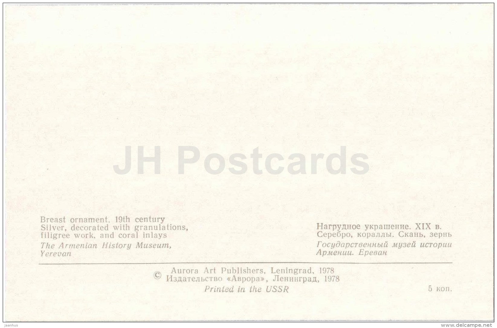 breast ornament - Jewellery - Armenian History Museum - 1978 - Russia USSR - unused