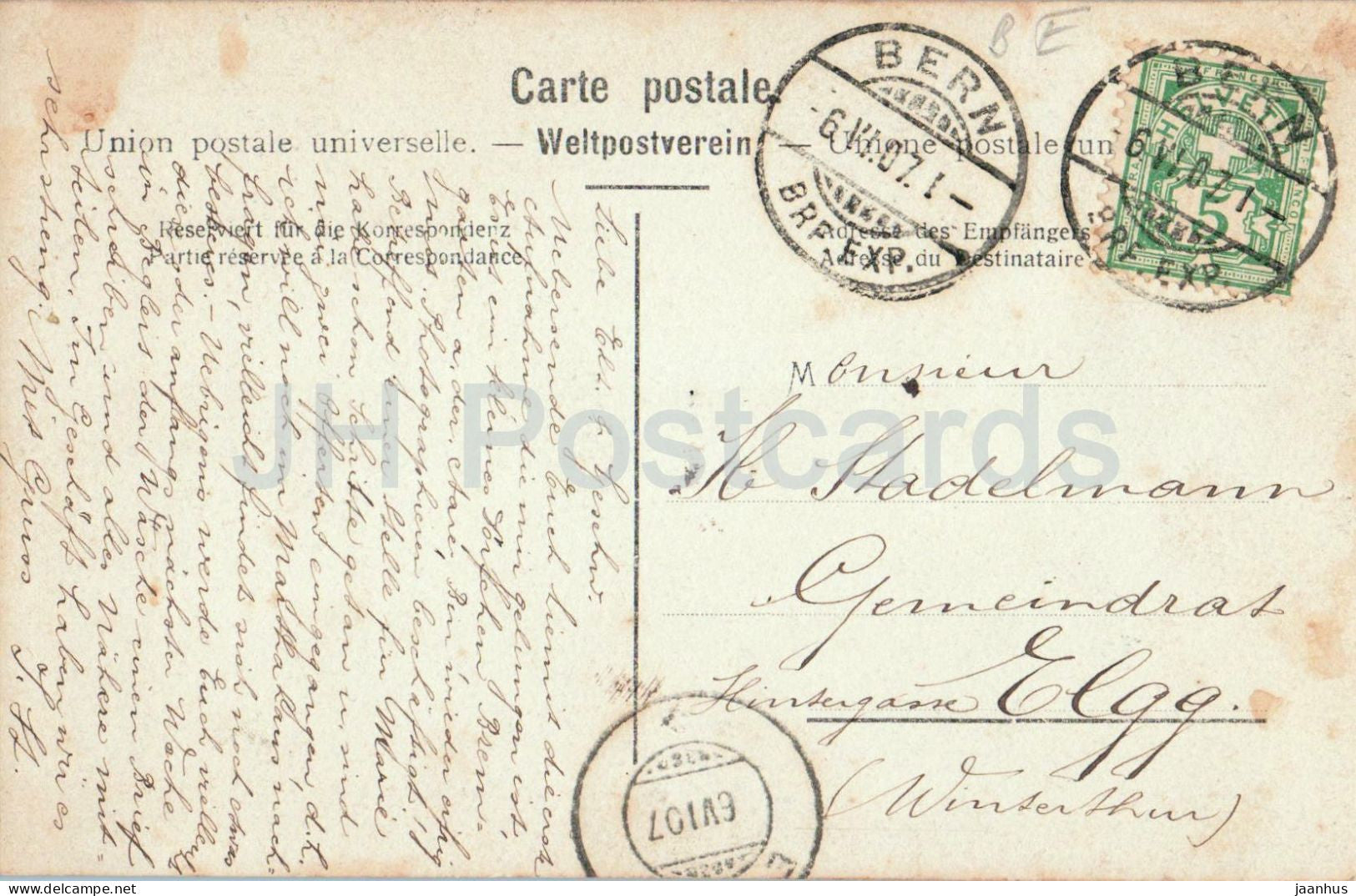 Bremgarten a d Aare - river - panorama - sepia photograph - old postcard - 1907 - Switzerland - used