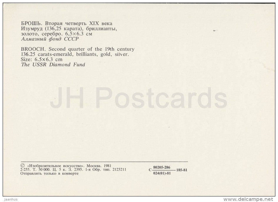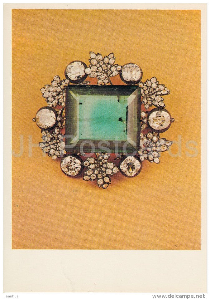 Brooch - carats-emerald , silver , brilliants , gold - Diamond Fund of Russia - 1981 - Russia USSR - unused