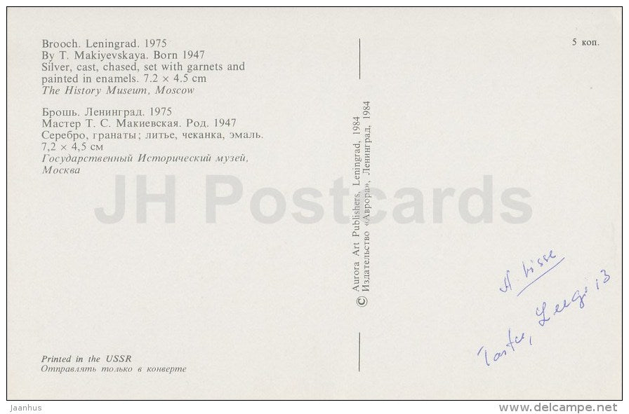 Brooch - silver - Russian and Soviet Jewellery - 1984 - Russia USSR - unused