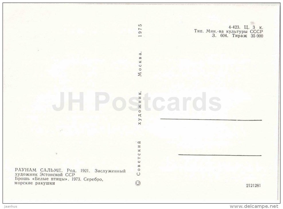 brooch White Birds by S. Raunam - silver - estonian jewelery art - 1975 - Estonia USSR - unused