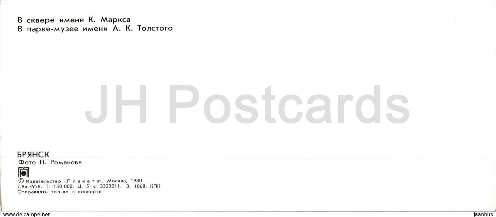 Bryansk - Marx square - Tolstoy park museum - 1980 - Russia USSR - unused