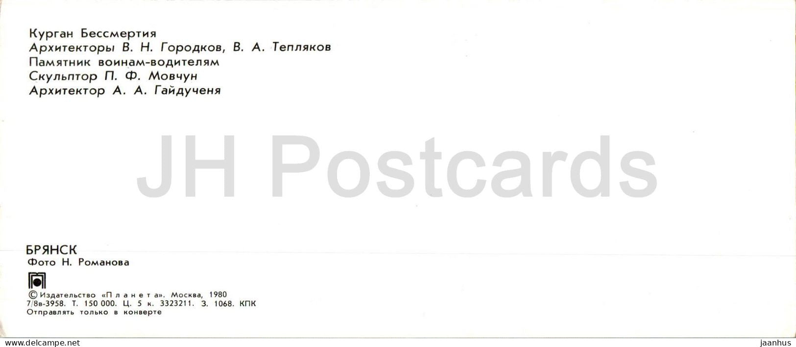 Bryansk - Mound of Immortality - monument to sodiers drivers - 1980 - Russia USSR - unused