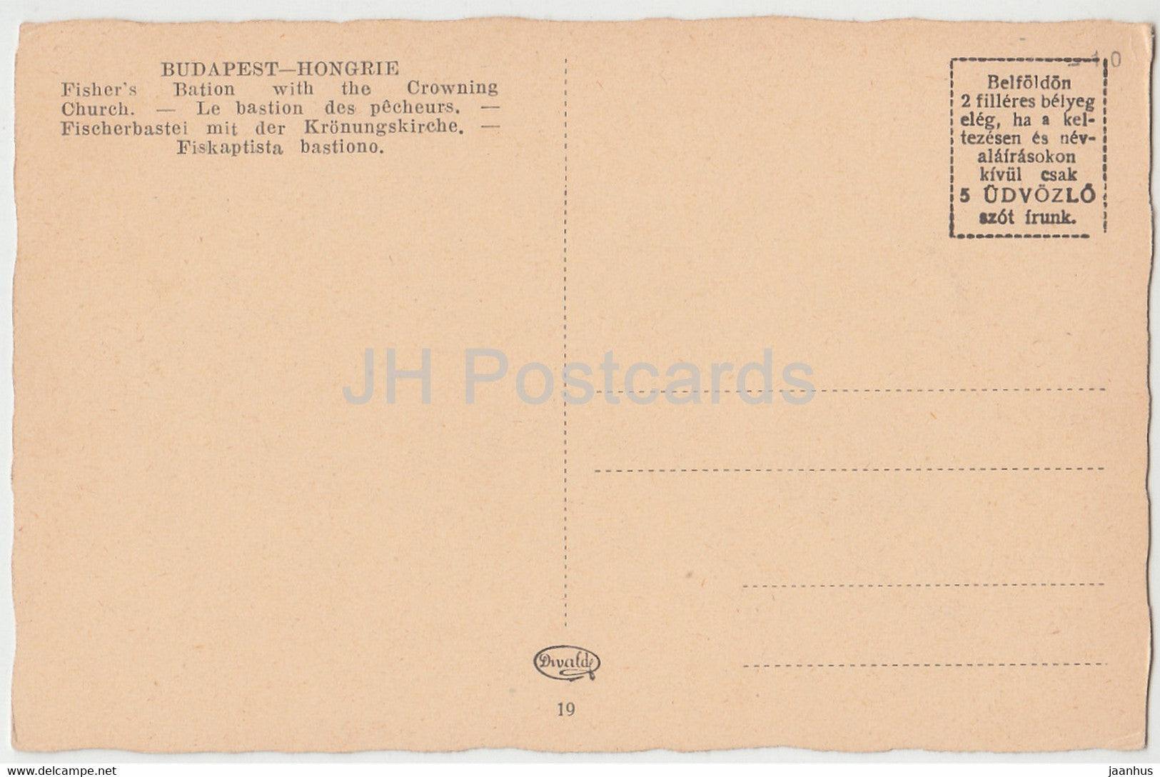 Budapest - Halaszbastya a Koronazo templommal - Fishers Bastion with Crowning Church - old postcard - Hungary - unused