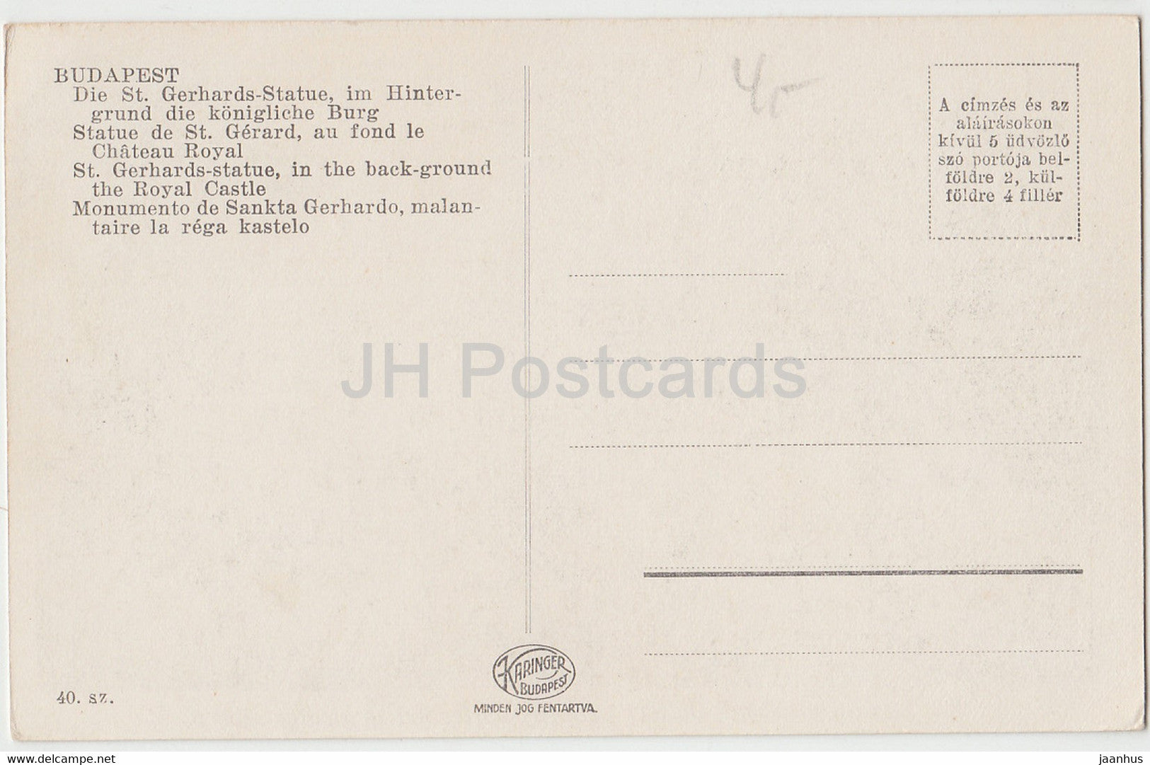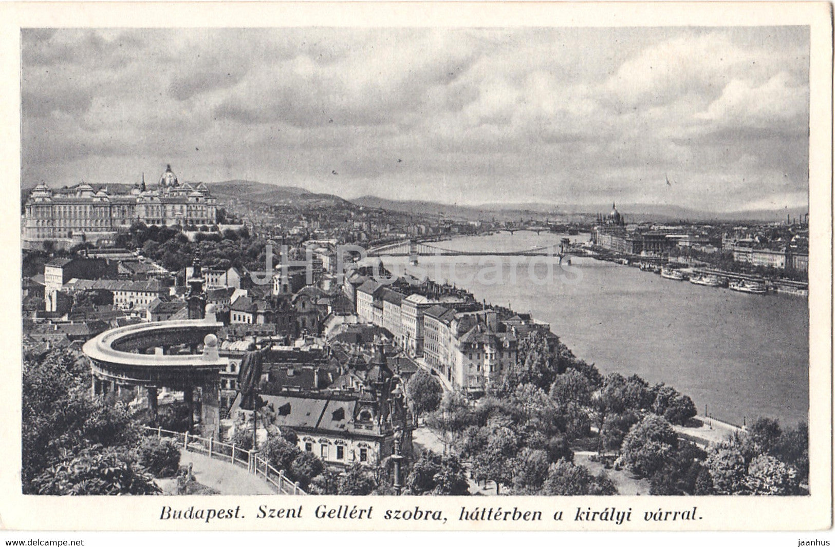 Budapest - Szent Gellert szobra hatterben a Kiralyi varral - old postcard - Hungary - unused