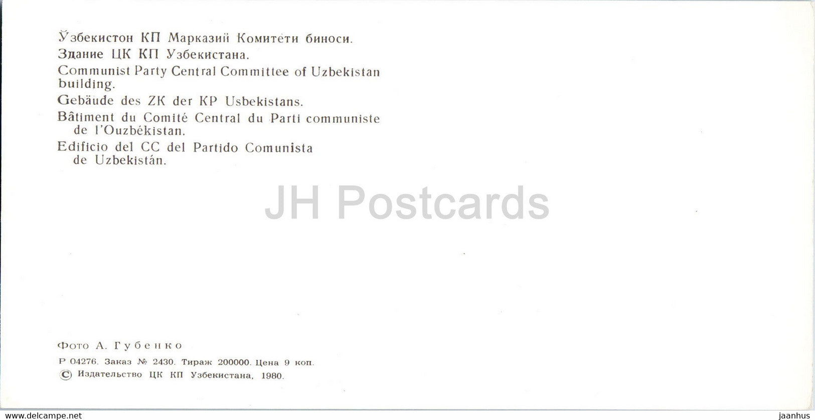 building of Communist Party Central Committee of Uzbekistan - 1 - Tashkent - Toshkent - 1980 - Uzbekistan USSR - unused