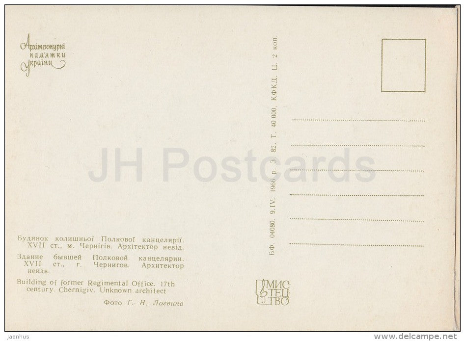 Building of Former Regimental Office , Chernigiv - architectural monument - 1966 - Ukraine USSR - unused
