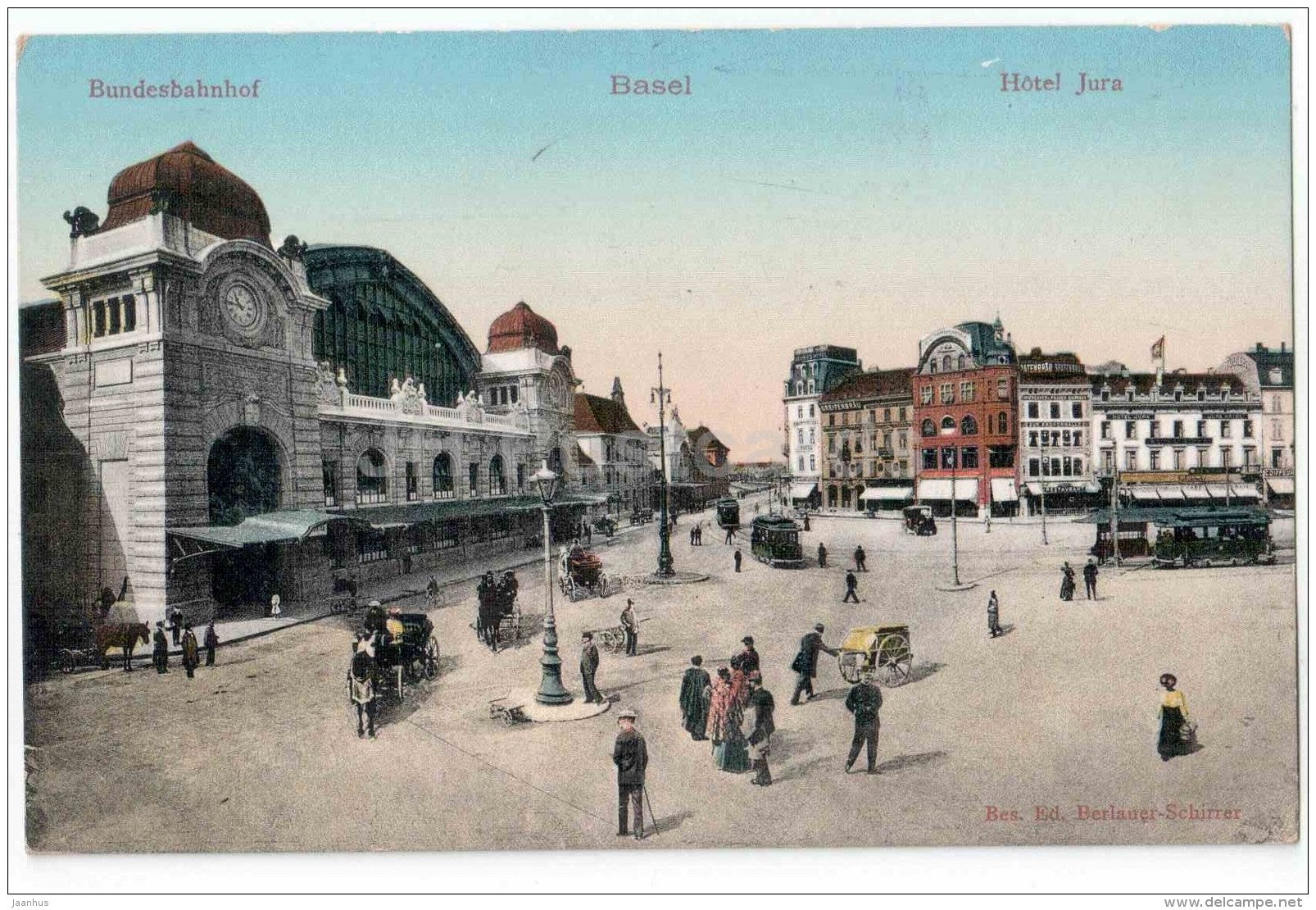 Bundesbahnhof - hotel Jura - railway station - Basel - Switzerland - old postcard - 1911 - unused