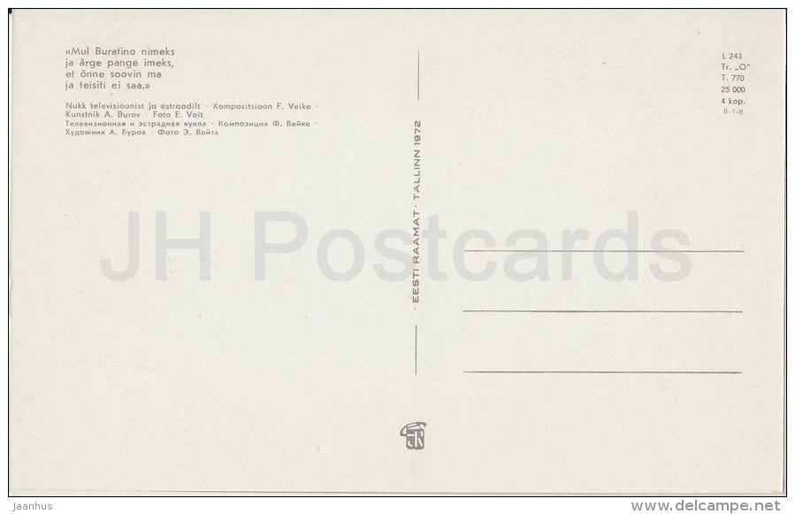 Buratino - Pinocchio - puppet - Estonian Puppetry performances - 1972 - Estonia USSR - unused