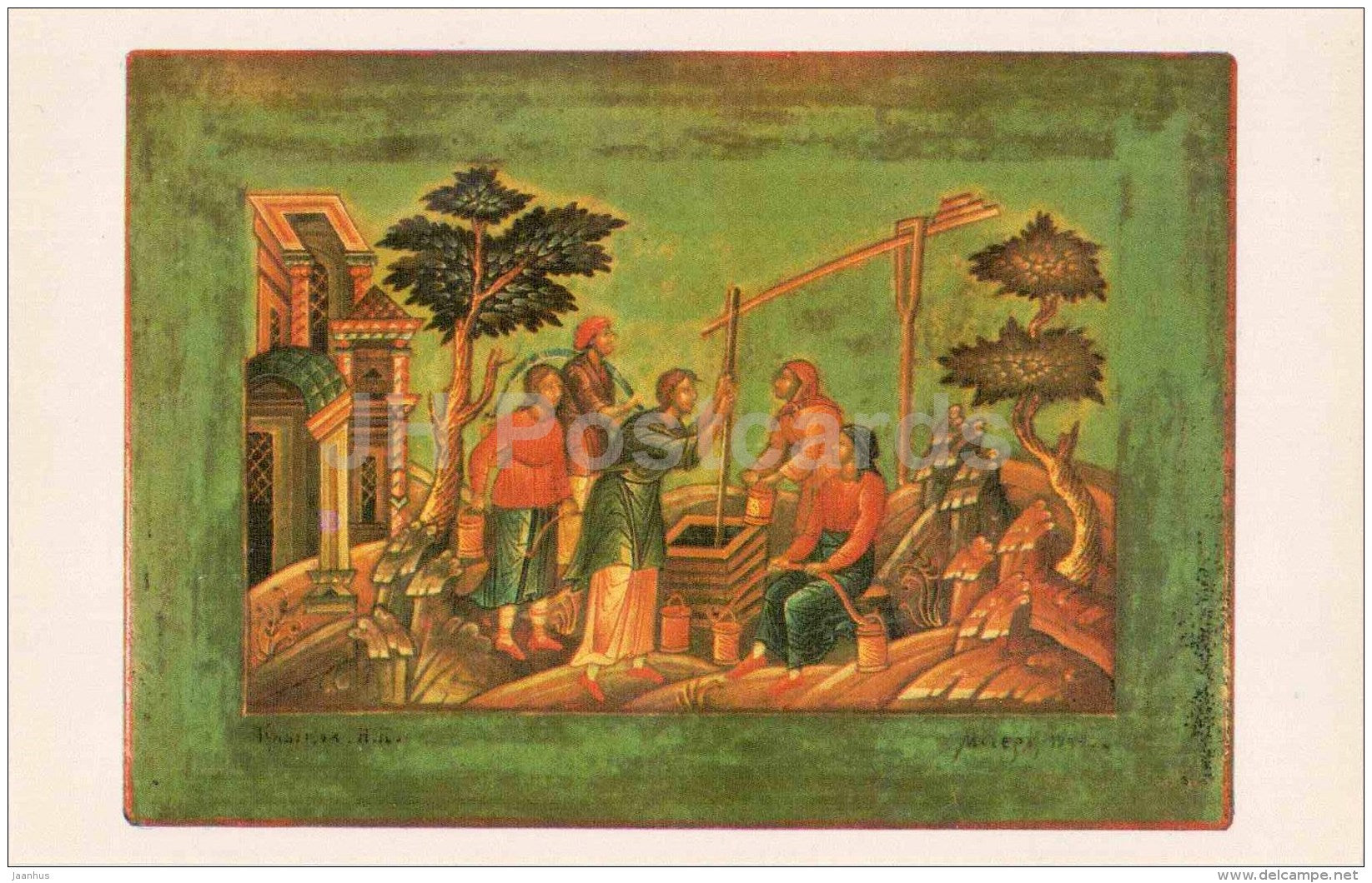 by Nikolai Klykov - Bu the Well , 1942 - Lacquered Miniatures from Mstiora - 1982 - Russia USSR - unused