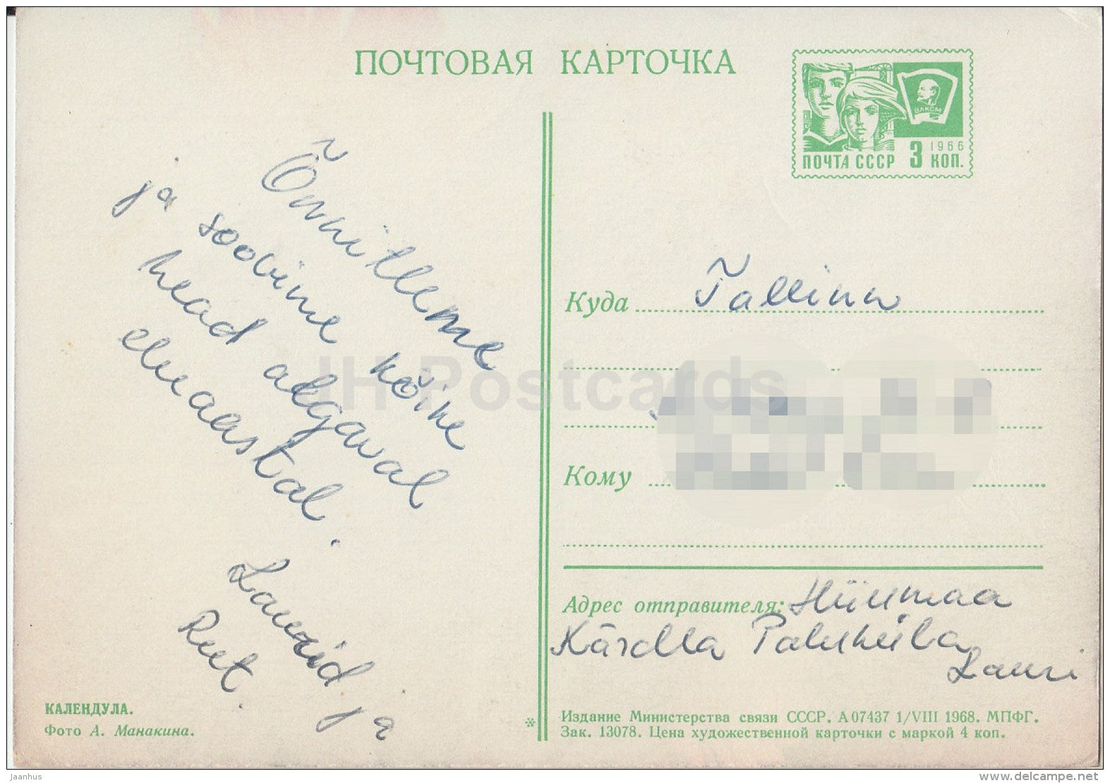 calendula - flowers - postal stationery - 1968 - Russia USSR - used