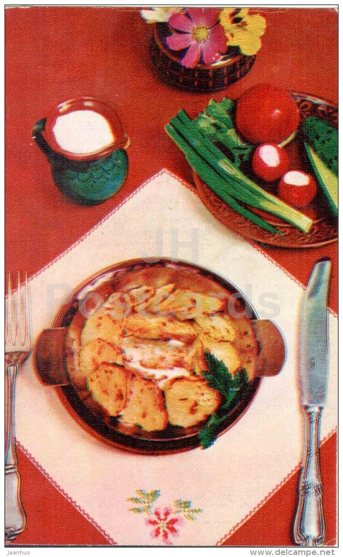 Capelin with potatoes - tomato - Ocean Gifts - dishes - cuisine - 1981 - Russia USSR - unused