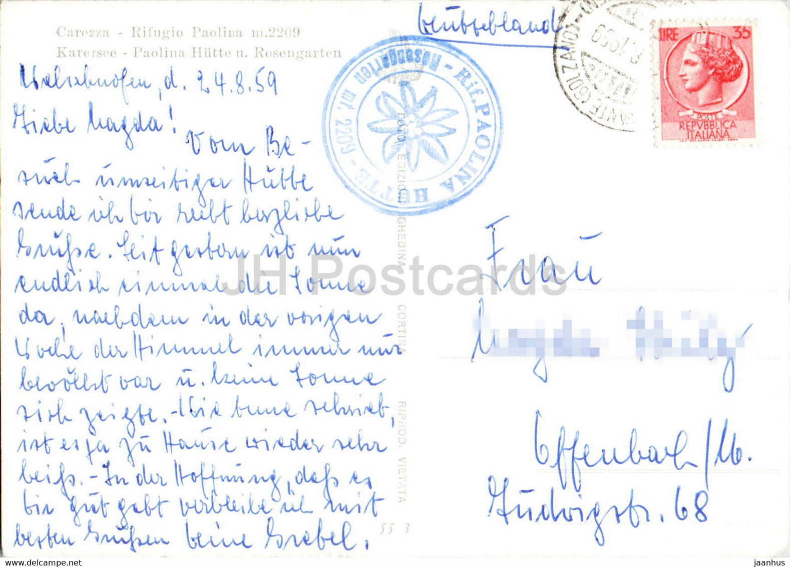 Carezza - Rifugio Paolina - Karersee - Paolina Hutte u Rosengarten - old postcard - 1959 - Italy - used